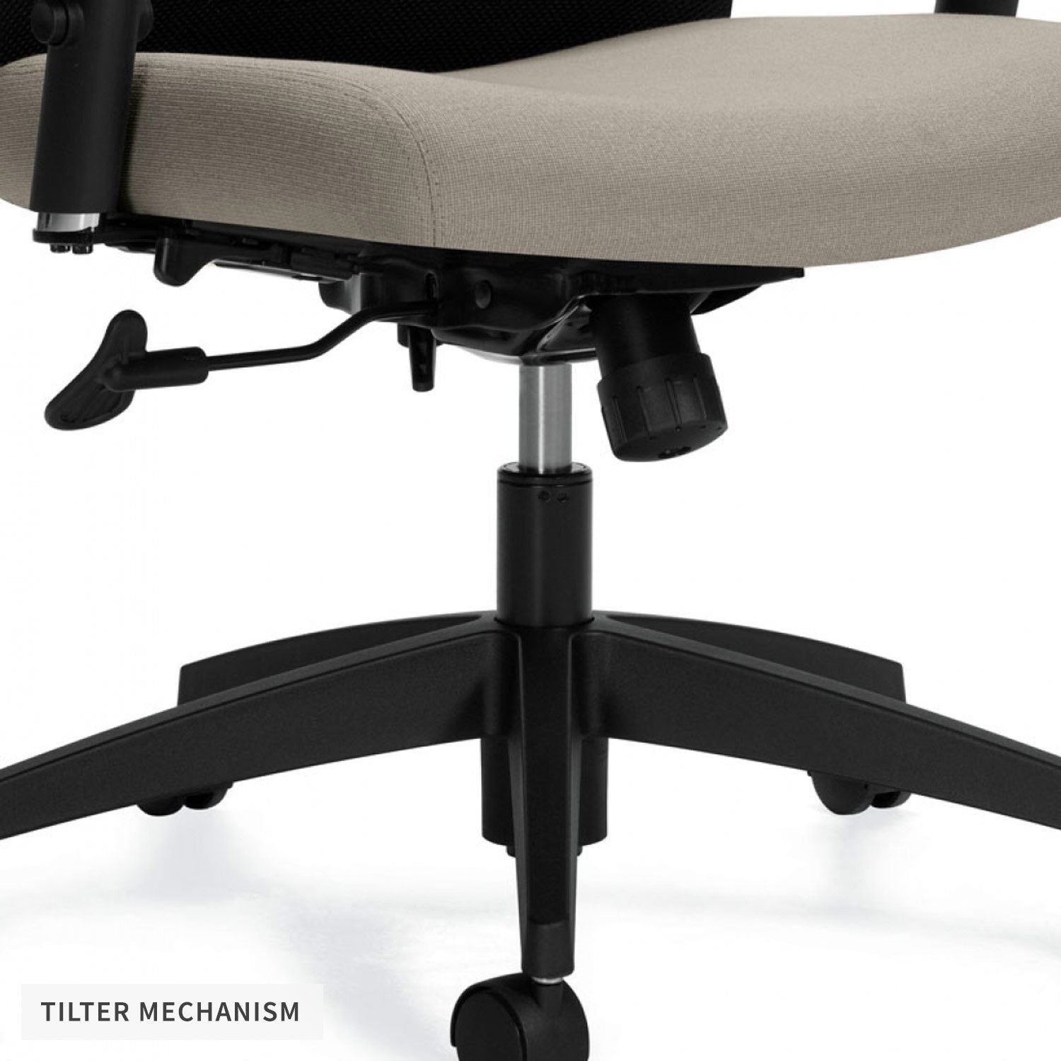 Tilter Mechanism : Features a tilting mechanism with adjustable tension, manual seat depth adjustment and single position tilt-lock.