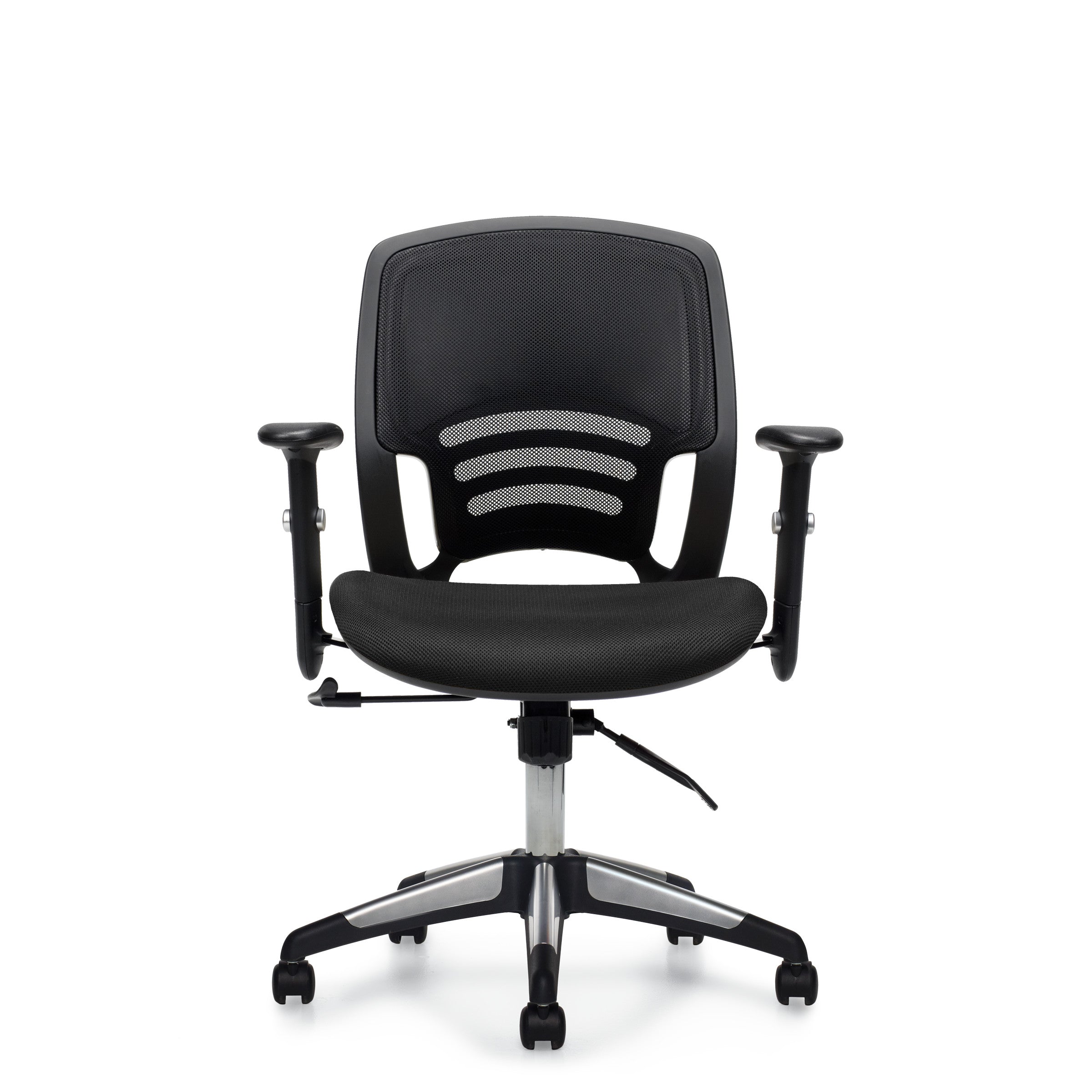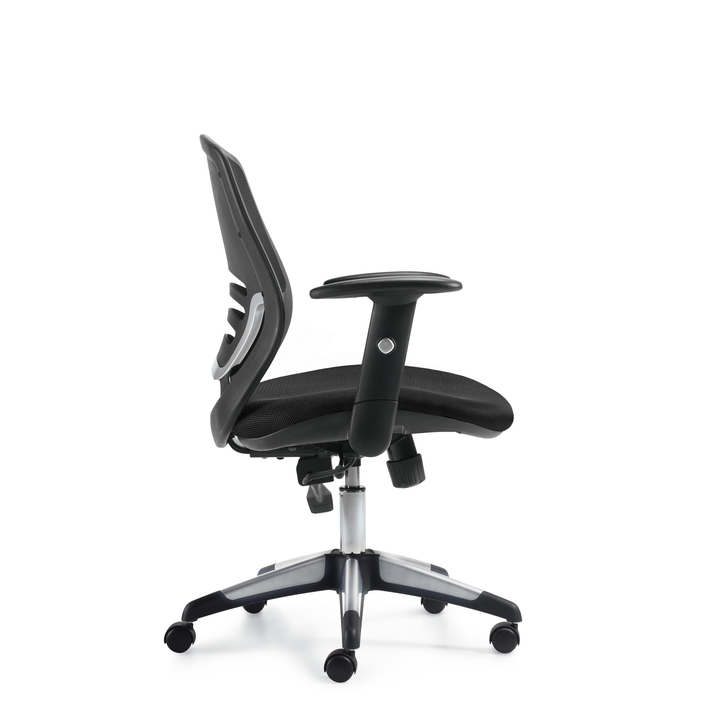 Equipped with a black mesh back and a breathable black mesh fabric seat, this chair can be easily adjusted with pneumatic seat height adjustment. Its height-adjustable arms and polyurethane armrests provide support, while its synchro-tilt chair control with infinite position tilt lock allows for flexible movement. Finally, its twin-wheel carpet casters make mobility easy.