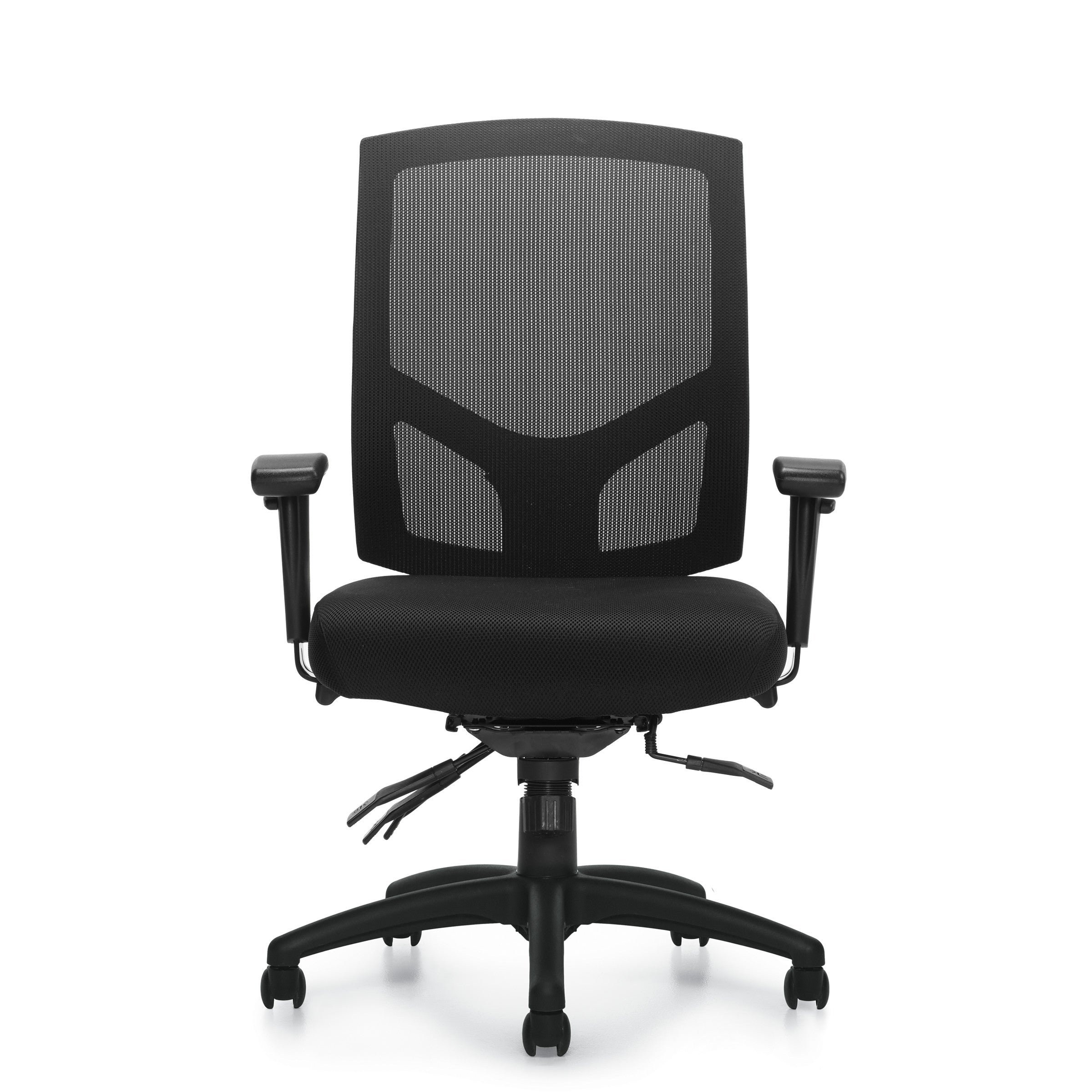 This chair features a breathable Black mesh fabric seat and a Black mesh back. It has an adjustable pneumatic seat height and adjustable armrests (both width and height). To increase your comfort, it also includes an infinite seat tilt lock with tilt tension adjustment, back angle and back height adjustments, a seat slider, and twin wheel carpet casters.