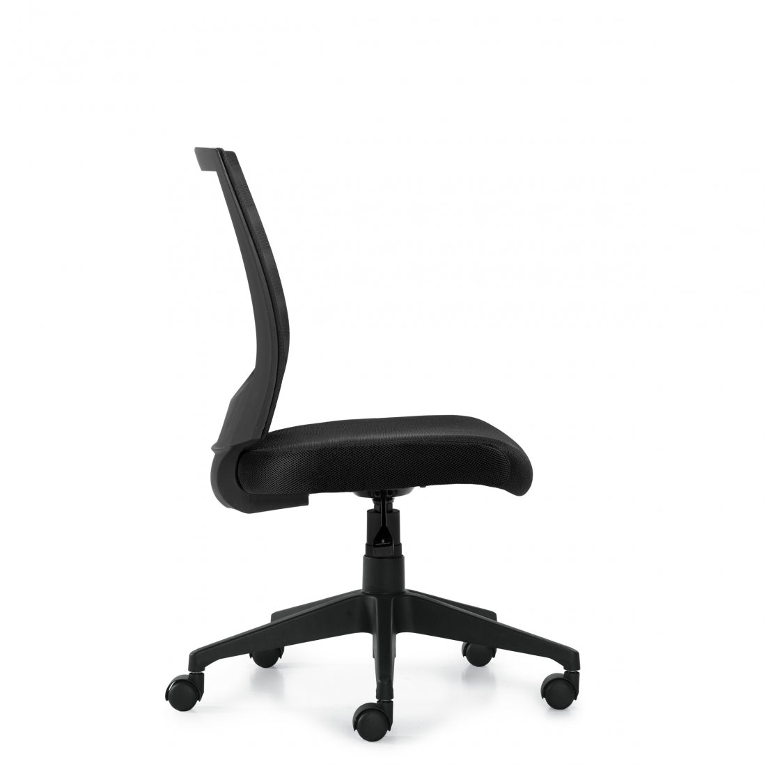 This chair features a mid-back design with a breathable, black mesh back and seat. Pneumatic seat height adjustment and swivel task mechanism allow for easy adjusting and maneuvering, and twin wheel carpet casters ensure smooth motion.