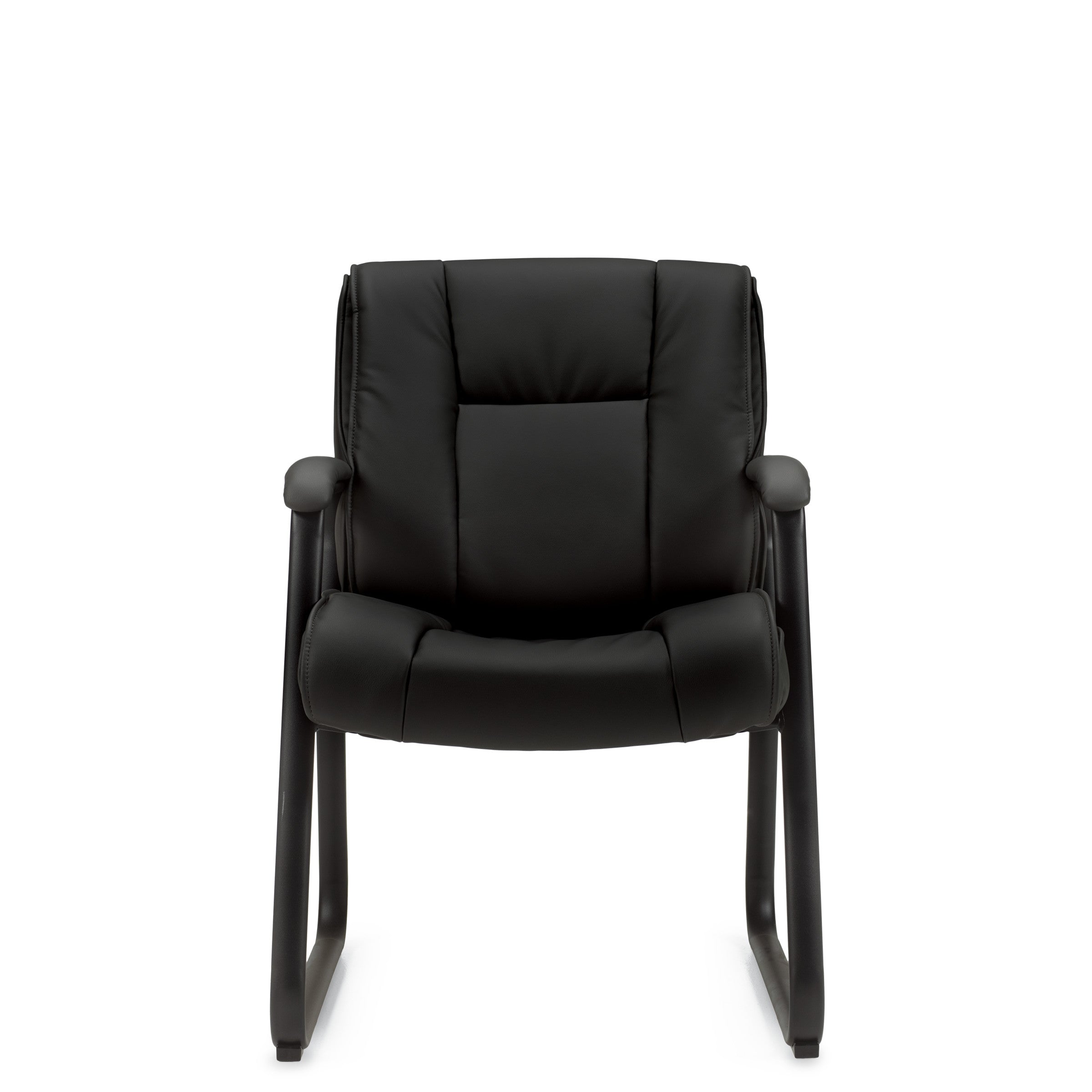 Featuring black Luxhide upholstery with a stylish mock leather trim, this chair has an attractive sled base design and an upholstered armrests to provide comfort.