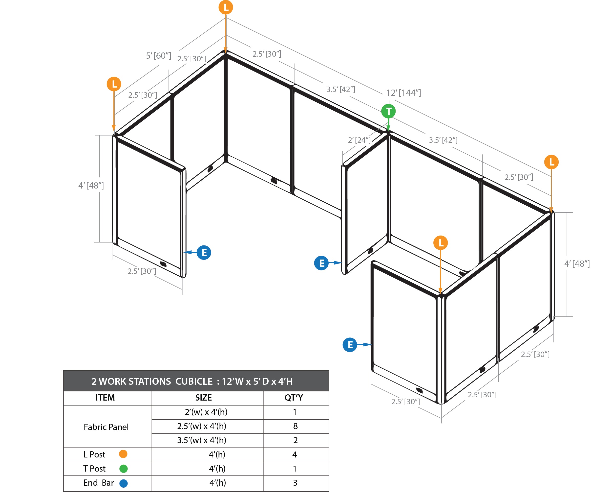 • The cubicle package includes 24”W panel(1), 30"W panels(8), 42"W panels(2), End bars(3), T post(1) & L posts(4).