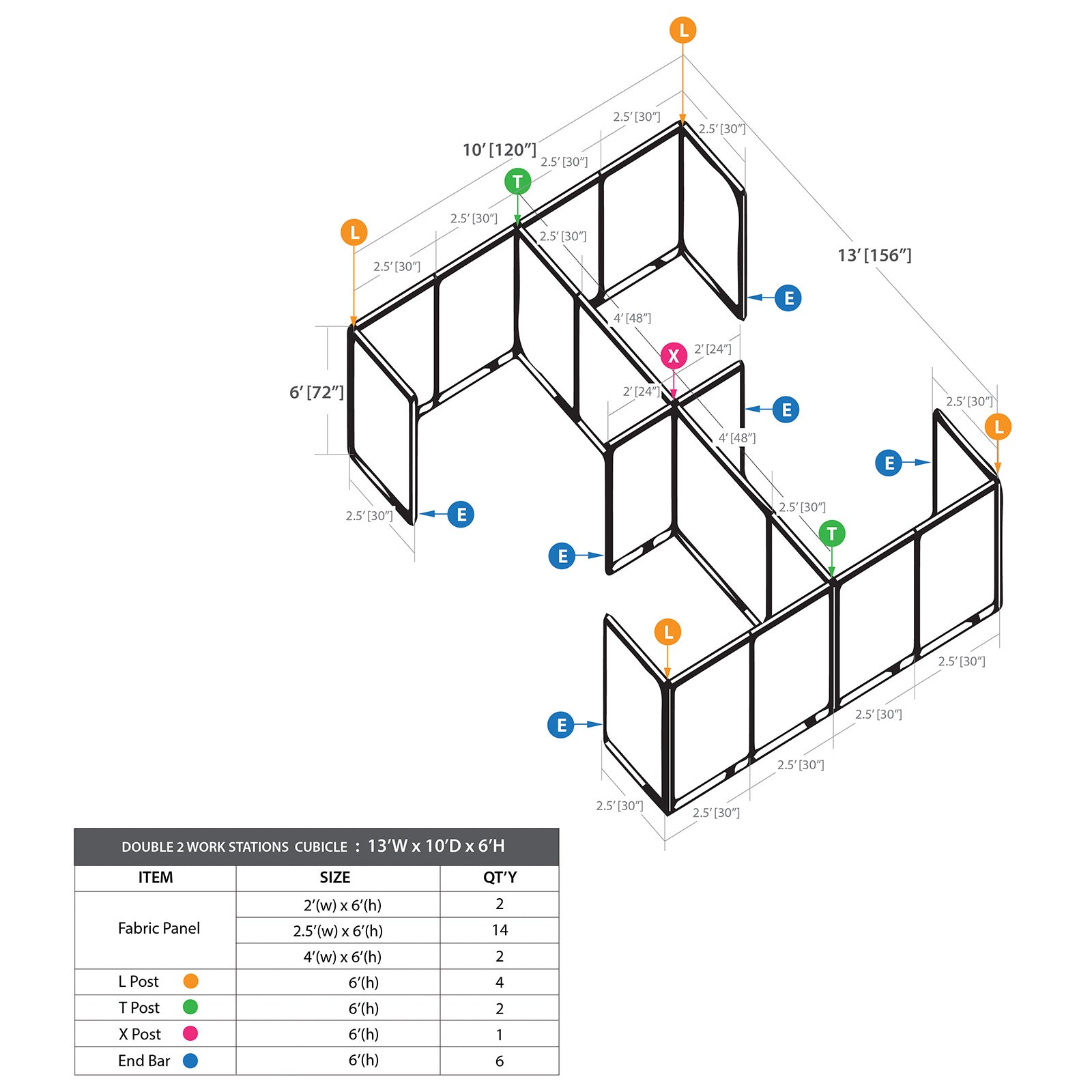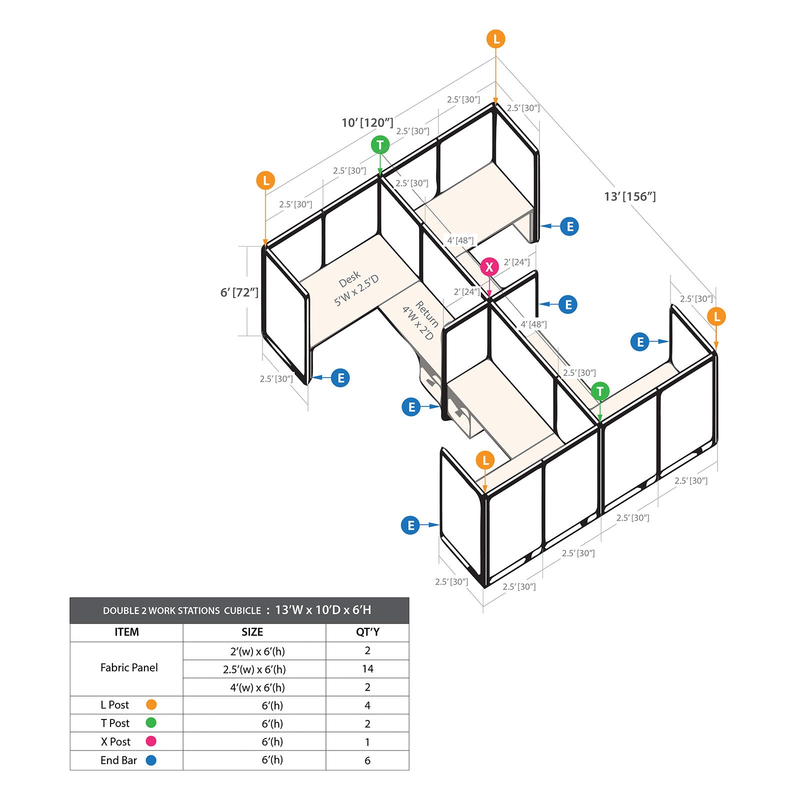 GOF Double 4 Person Separate Workstation Cubicle (10'D x 13'W x 6'H-W)