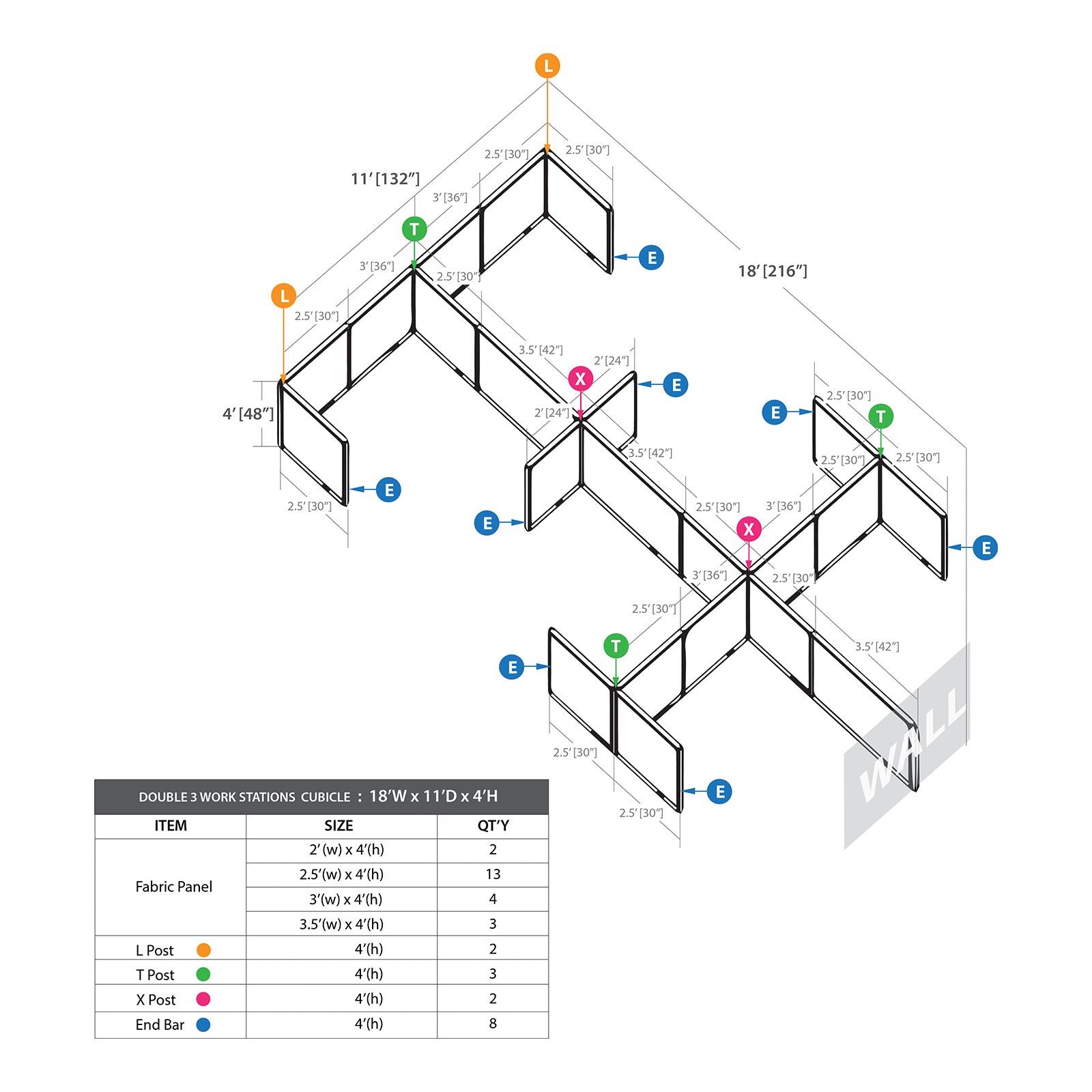 • The cubicle package includes 24"W panels(2), 30"W panels(13), 36"W panels(4), 42"W panels(3), End bars(8), X post(2), T posts(3) & L posts(2).