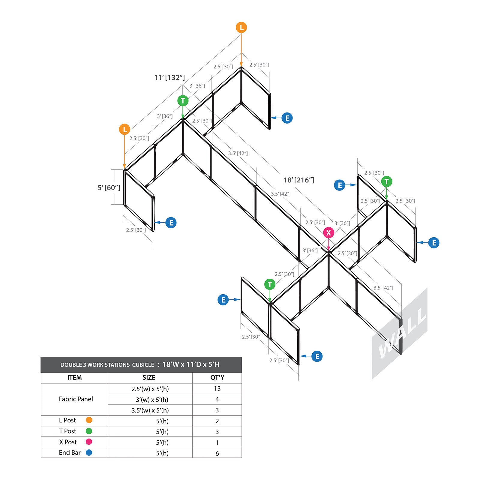• The cubicle package includes 30"W panels(13), 36"W panels(4), 42"W panels(3), End bars(6), X post(1), T posts(3) & L posts(2).