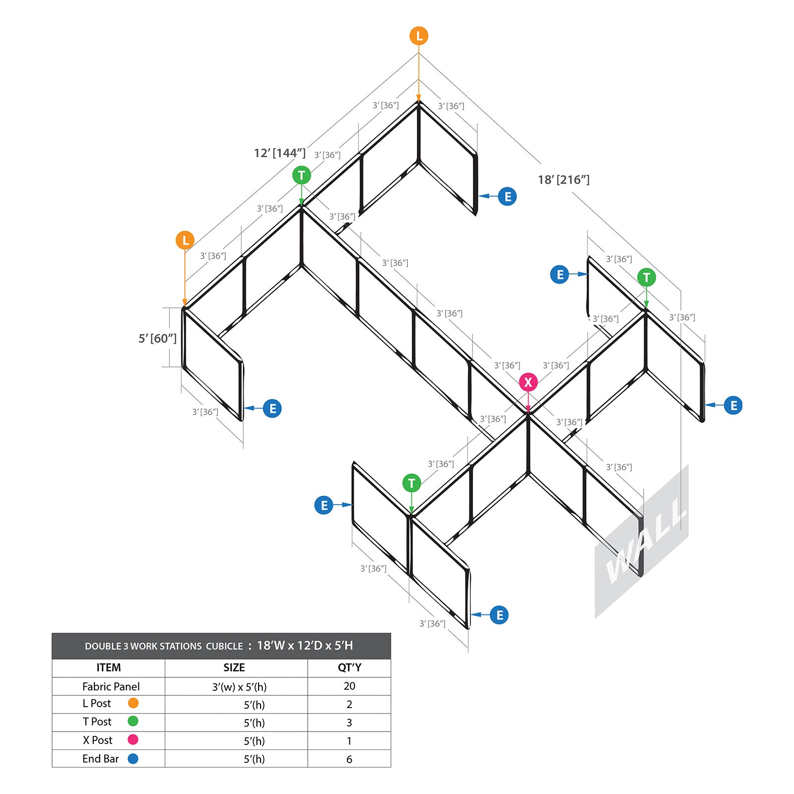 • The cubicle package includes 36"W panels(20), End bars(6), X post(1), T posts(3) & L posts(2).