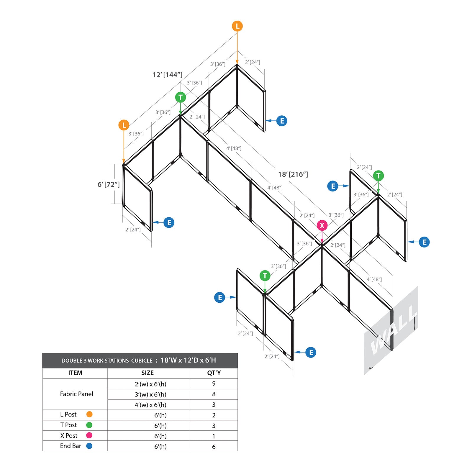 Home GOF Double 6 Person Workstation Cubicle (C-12'D x 18'W x 6'H)