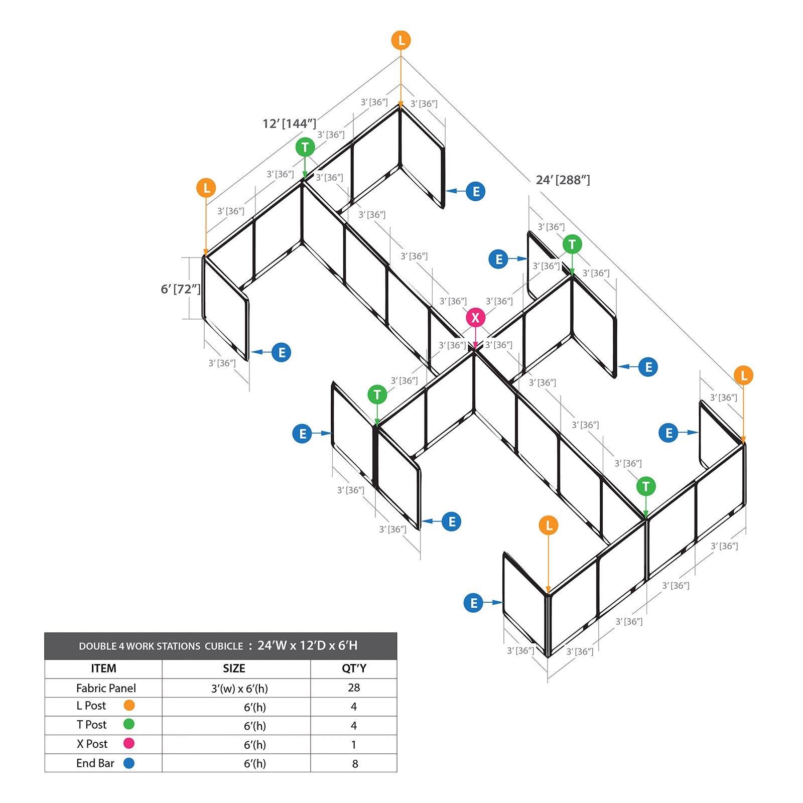 GOF Double 8 Person Workstation Cubicle (12'D x 24'W x 6'H)